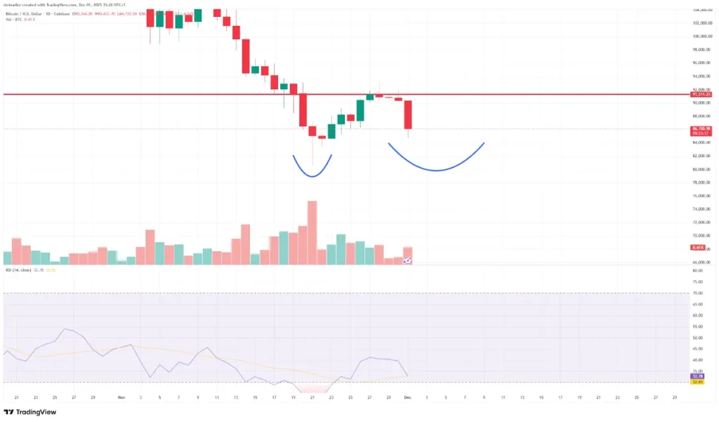 Es mag zu weit vorgegriffen sein, aber im täglichen Chart könnte sich eine Double-Bottom-Formation ausbilden. Voraussetzung dafür ist, dass 80.000 US-Dollar als Unterstützung halten und die Bullen den Kurs über die Nackenlinie drücken können. Diese läge bei 91.311 US-Dollar und müsste vorzugsweise mit hohem Volumen überwunden werden, um das Chartmuster zu validieren. Ein anschließender Retest würde als zusätzliche Bestätigung ebenfalls nicht schaden.