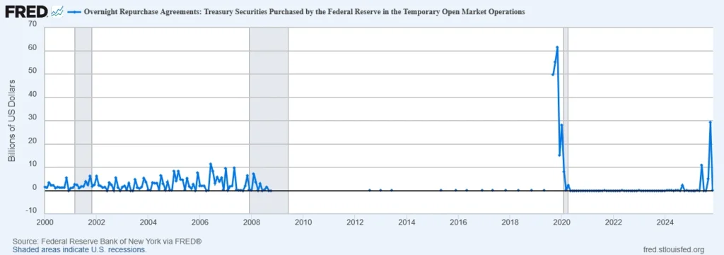 Bitcoin reagiert sehr sensibel auf eine Veränderung der Liquidität. Während die Aktienmärkte seit Ende Oktober lediglich den Beginn einer Korrektur eingeleitet haben, hat der Bitcoin-Kurs bereits schwer Schlagseite erhalten. Dass die Lage allmählich zu einem ernsthaften Problem werden könnte, signalisieren jedoch mittlerweile auch die Repo-Märkte. Die Repo-Märkte sind Finanzmärkte, auf denen sich Banken und andere Institutionen kurzfristig Geld leihen, indem sie Wertpapiere (meist Staatsanleihen) verkaufen und gleichzeitig vereinbaren, sie zu einem späteren Zeitpunkt zu einem festen Preis zurückzukaufen.